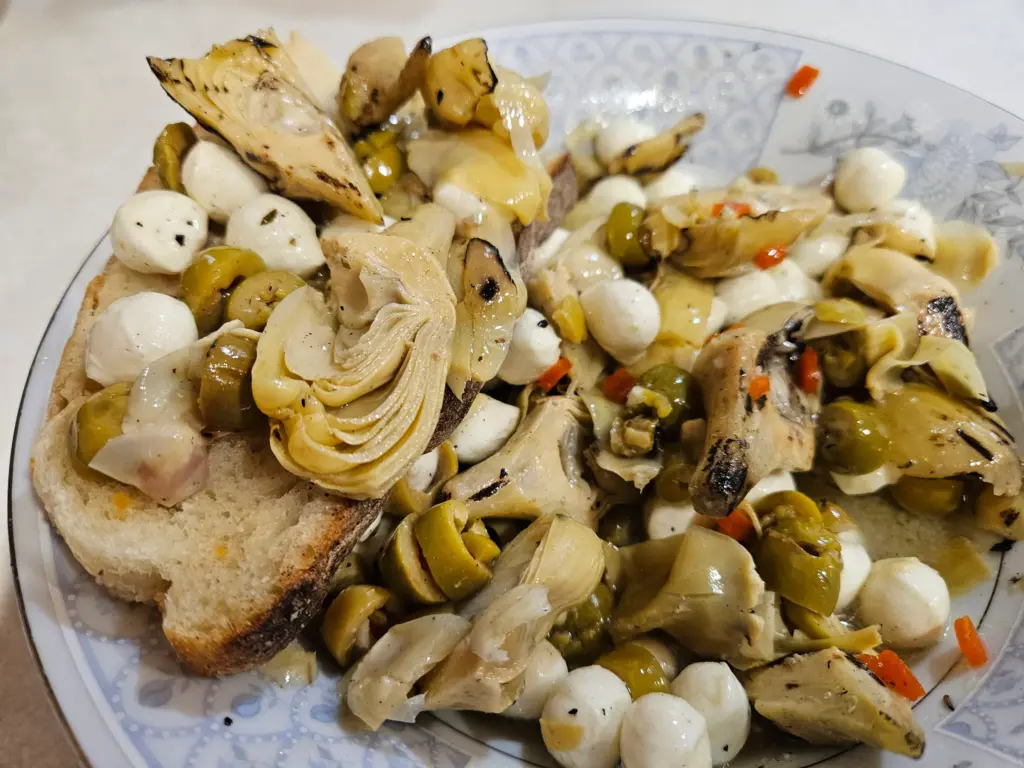 Marinated Mozzarella, Artichoke and Olive Antipasto